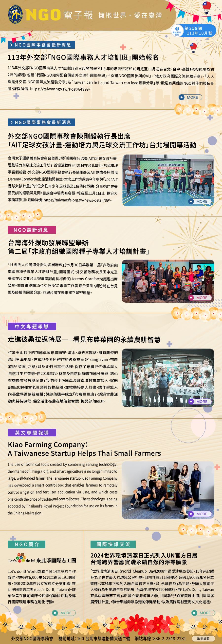 外交部NGO雙語網站十月電子報:113年外交部「NGO國際事務人才培訓班」開始報名