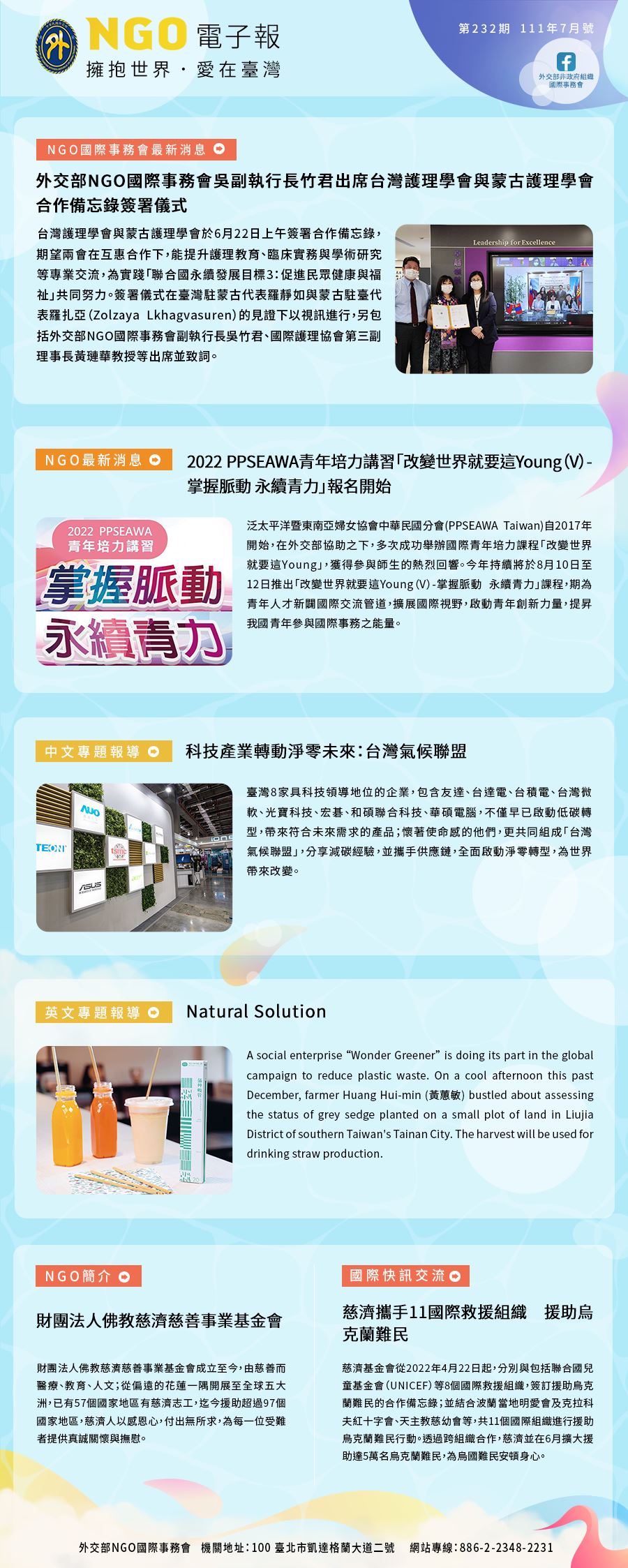 外交部NGO雙語網站七月電子報:外交部NGO國際事務會吳副執行長竹君出席台灣護理學會與蒙古護理學會合作備忘錄簽署儀式