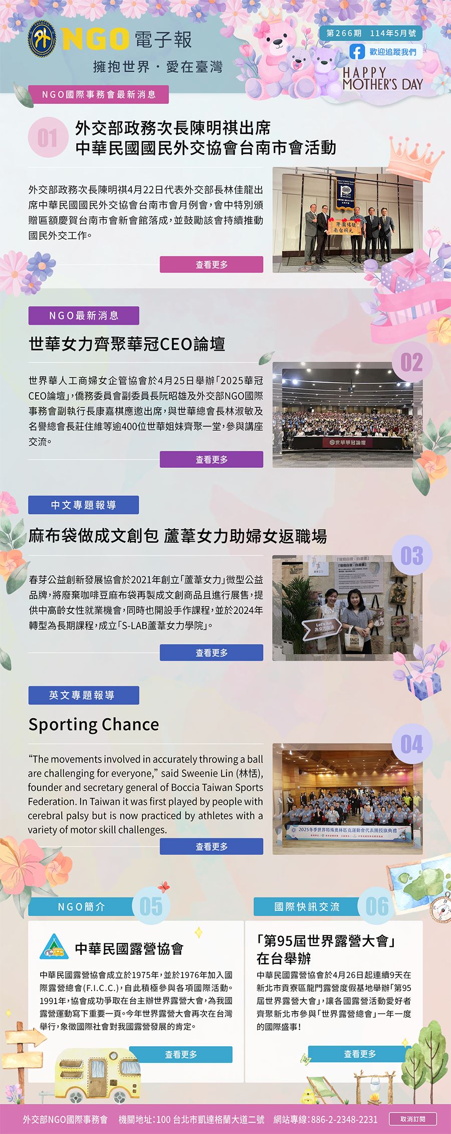 外交部NGO雙語網站五月電子報:外交部政務次長陳明祺出席「中華民國國民外交協會台南市會」活動